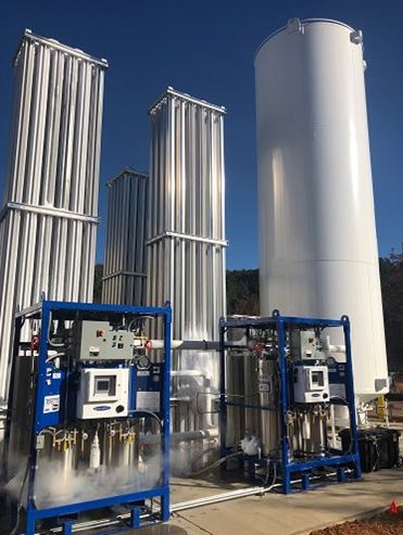 容積為 1000 和 5000 升的獨(dú)立式微型散裝撬裝塊,直接由低溫槽車補(bǔ)液,無需更換鋼瓶